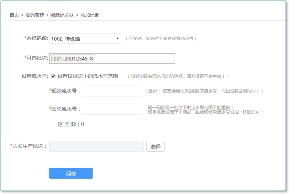 第七步:溯源码与生产批次关联(产品生产中都是用批次记录信息的,最终需要将溯源码和批次关联)