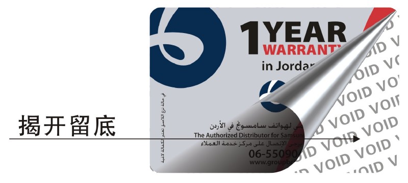 揭开留底标签是一种以特殊材料工艺制作的标签,由于撕下后通常会留下VOID字样,因此又称VOID标签。这种标签撕下时本身会被破坏,除了会留下字样,还会失去粘性,一旦撕开就必然会被发现,因此广泛用于物流标签和防拆封口、封条。这种标签采用PET面材,可制成哑银、光银、闪银、激光、白色等多种色彩透明、不透明的材料,留底可以使用“VOID”、“保修已失效”或品牌名称等字样(字模)。
